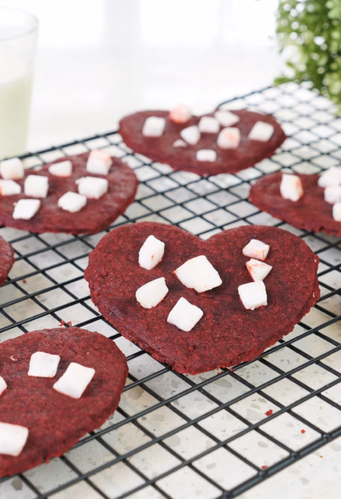Vegan Heart Shaped Red Velvet Cookies